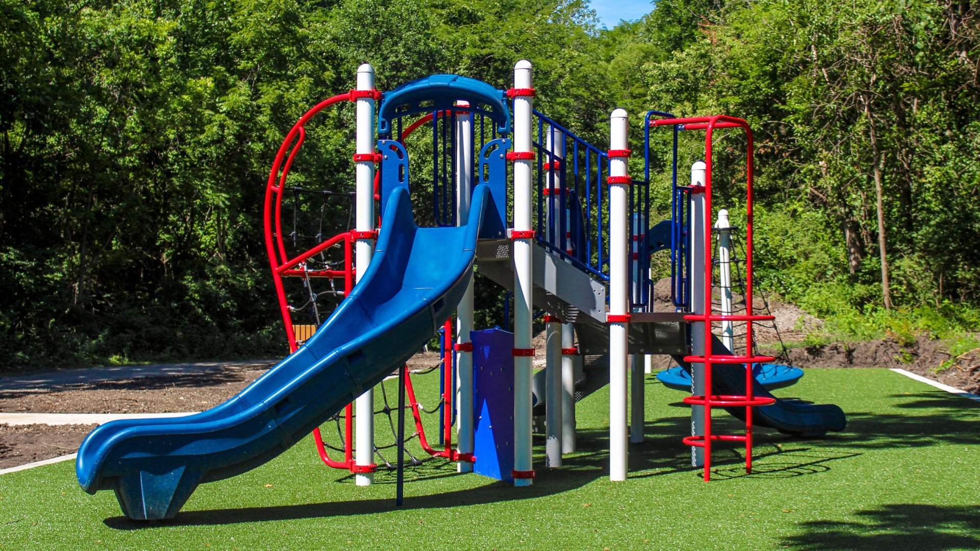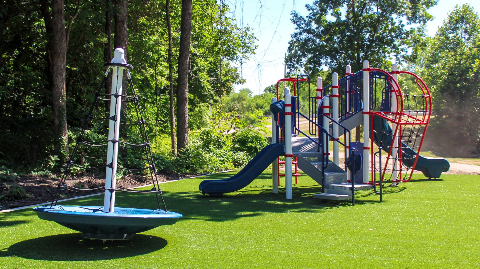 Creekside Park is a 19.9-acre play park that provides bike/hike trail access from the Creekside and Green Meadows neighborhoods to Nall Avenue. The park features a playground with slides, climbing nets, and a climbing spinner.