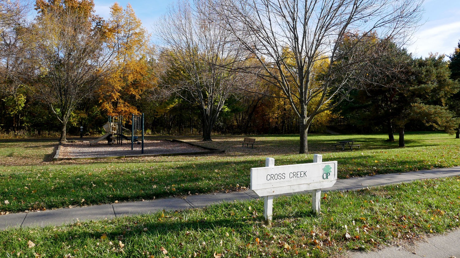 Cross Creek Park is a 54.6-acre play park with bike/hike trail connections that meander through a vast area with meadows and woods and borders Indian Creek.