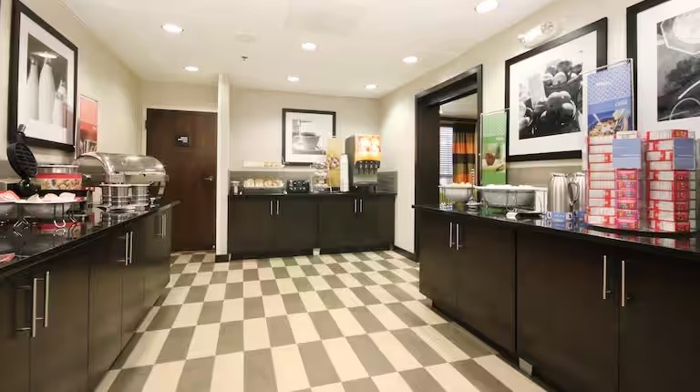 Guests can begin their morning with a complimentary hot breakfast before heading out for meetings, shopping, or exploring nearby attractions.