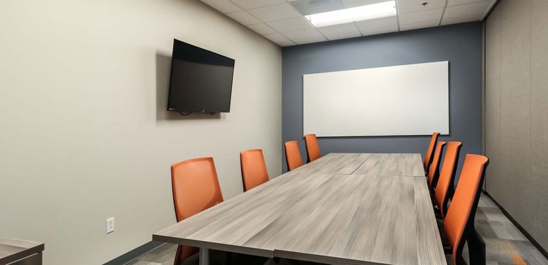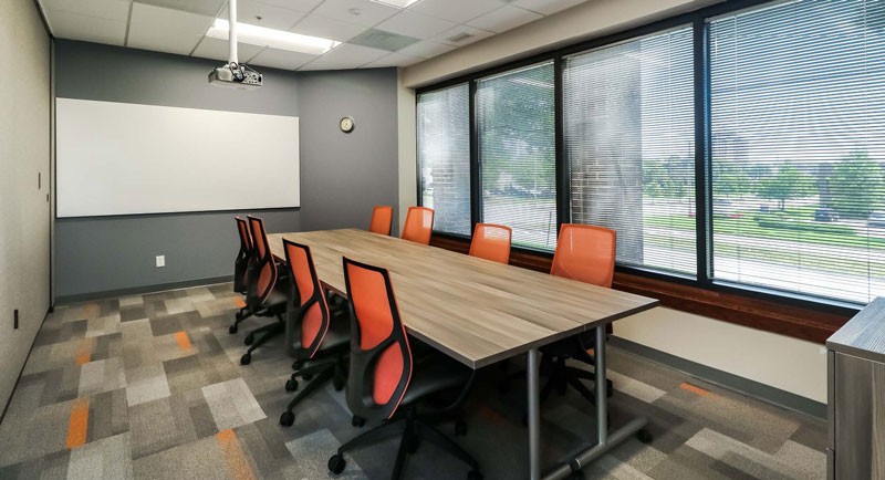 Office Evolution Overland Park has 4 conference rooms and an after-hours space. The smallest holds 6-8, 2 medium sized rooms hold 10-12 and the largest training/conference room can hold up to 24 people. All 4 options are include the use of either smart TV or projector depending on the room, whiteboards, conference phone, coffee service and WIFI for all attendees and are available to be booked anywhere from 30 mins to 8 hours, 24 hours a day, 7 days a week. The after hours networking event space is perfect for happy hour, socializing meet and greet events where people are walking about mingling. It’s capacity is 100 and is available after 5pm M-F, and all day on both Saturday or Sunday. Office Evolution encourages you to bring in catered food and drinks or they can help provide those and pass along the costs accordingly to limit the amount of work to the coordinators.