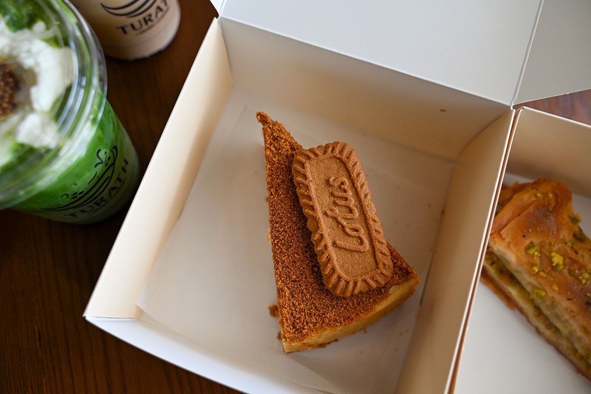 The shop features a variety of rich, flavorful coffee and matcha drinks made with distinctive ingredients like cardamom, figs, cinnamon, pistachio, and more. Paired with desserts and a beautifully designed space, Turath Coffee is quickly becoming a place worth visiting.
