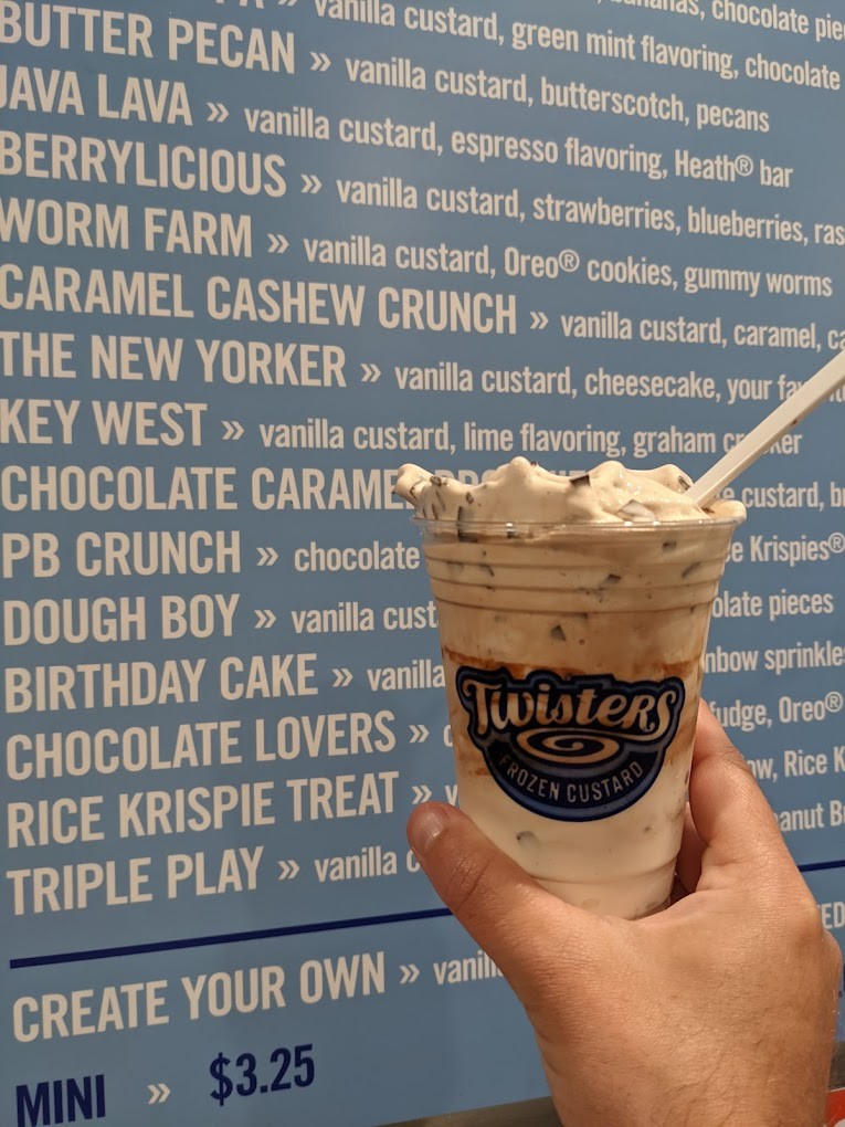 Home Twisters Frozen Custard Website Save 8675 W. 135th Street Overland Park, KS 66223 (913) 402-8110 Overview A local custard shop creating premium desserts with your favorite flavors and seasonal toppings. Cuisines Map View Details Kid-Friendly Local Favorites Sweets & Treats Map View