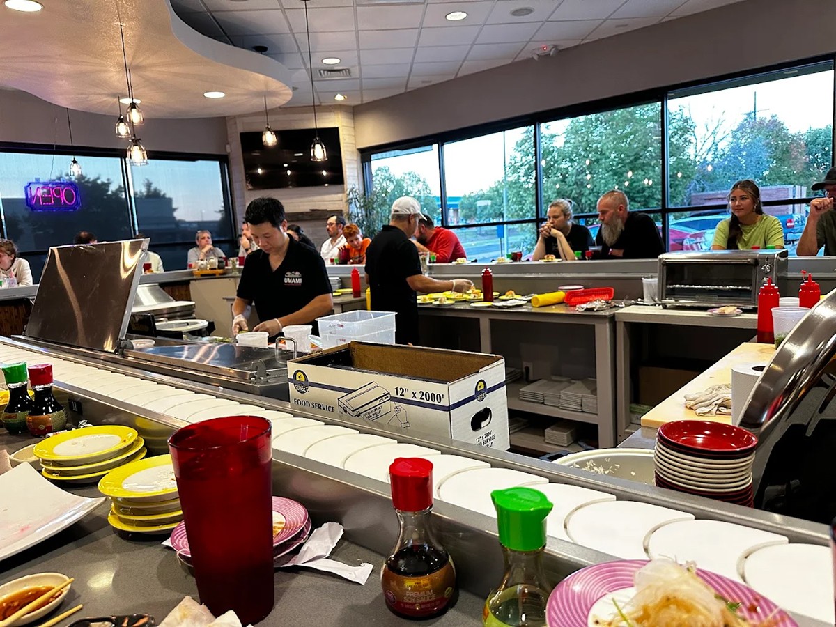 UMAMI Revolving Sushi is officially open in Overland Park, bringing a lively, interactive dining experience to the area. Guests can enjoy conveyor belt sushi as fresh rolls circle the room and arrive right at the table, making every visit feel a little playful and fast paced.