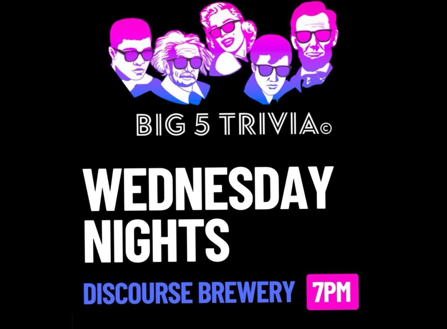Stop by Discourse Brewing for community, great beer, and TRIVIA on Wednesdays at 7pm.