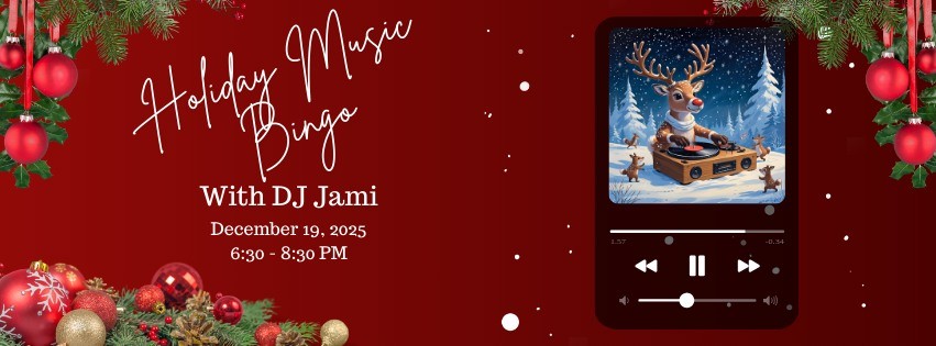 Join us for Holiday Music bingo with DJ Jami! It’s free to play. Win prizes and giveaways!