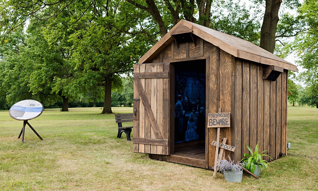This multimedia installation is based on a replica of the historic fort and incorporates video, music, writing, interpretation, oral histories, an original performance, and more to share the story.