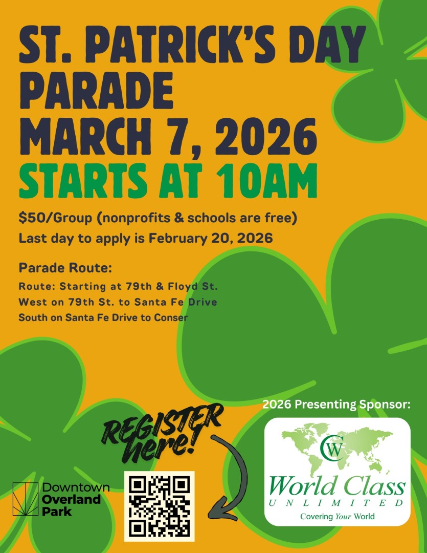 Don your green, bring your cheer, and join us for a morning of parade magic in the heart of Overland Park.