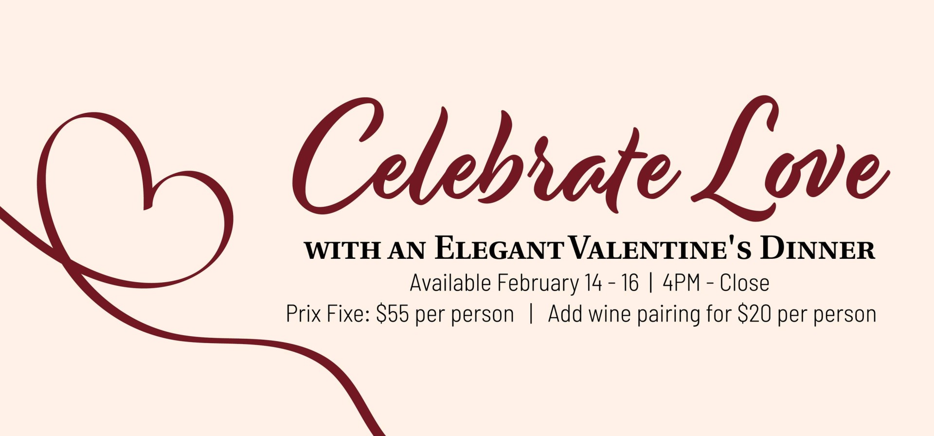 $55 prix fixe menu. Add wine pairing for $20