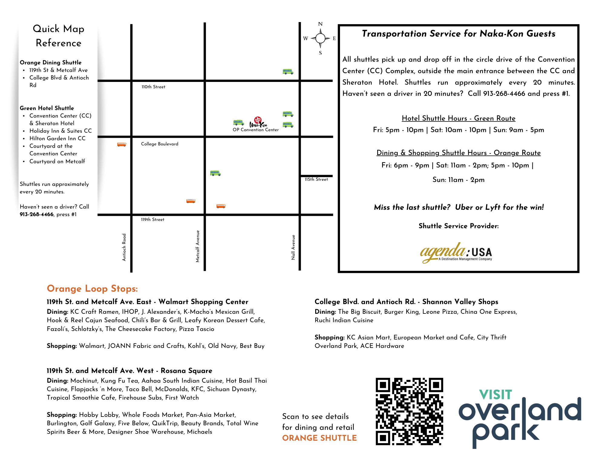Dining & Shopping Shuttle Hours - Orange Route